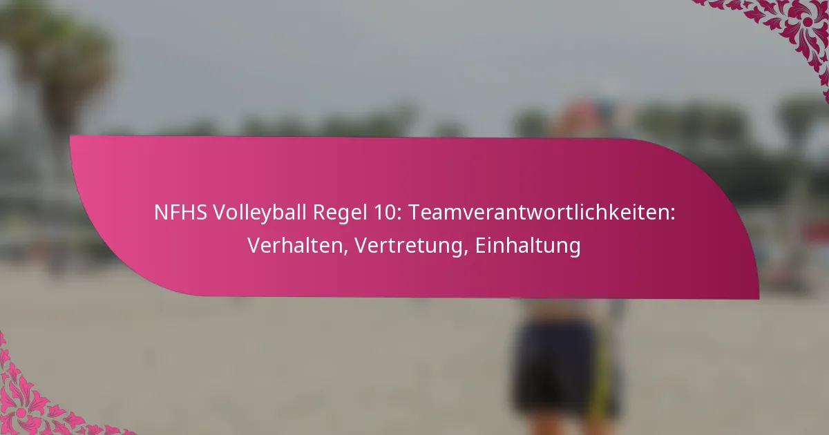 Die NFHS-Regel 10 umreißt die Verantwortlichkeiten von Volleyballteams in Bezug auf Verhalten, Vertretung und Einhaltung. Teams müssen spezifische Standards einhalten, um faires Spiel und Sportlichkeit während der Saison sicherzustellen.